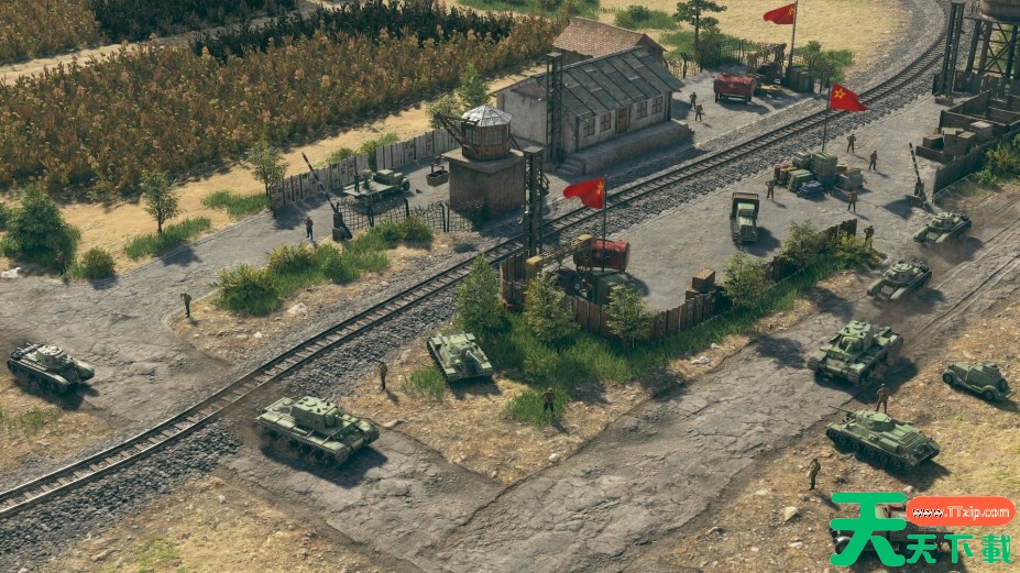 部署二战时期庞大的军械库:指挥超过300种真实单位——包括190多辆载具和110种步兵单位——如西方盟军的谢尔曼坦克、德军的梅塞施密特 Bf 109以及苏军的 T-34 坦克等。
