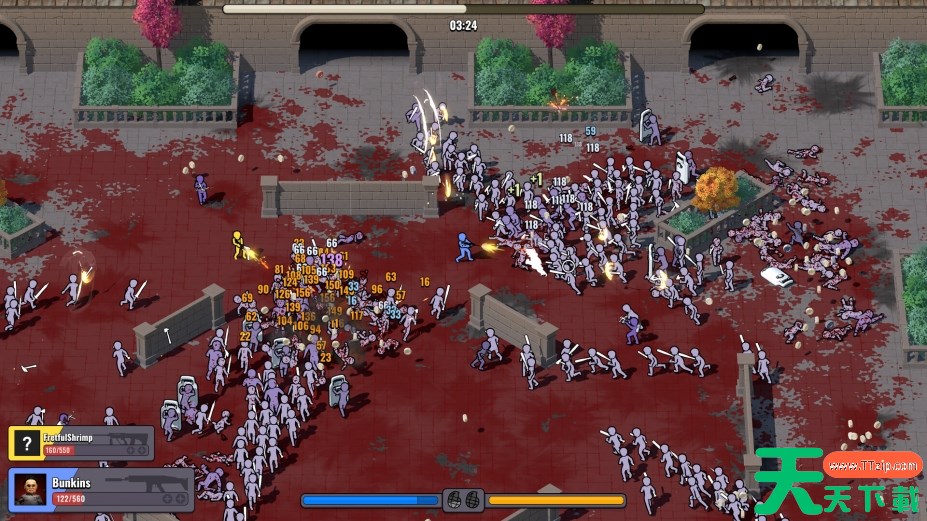 《兽群要你死》是一款休闲俯视角射击游戏,支持最多4人在线合作。在游戏中,玩家会和朋友们一起遭到愤怒兽群的伏击,需要与成千上万无情的敌人展开生存之战。玩家要让子弹持续飞射,向大群敌人投掷手榴弹,翻滚躲避危险,利用一切可用工具应对数量庞大的敌人。还能欣赏到布满裂缝和焦痕的战场,体验在枪林弹雨中求生的刺激。