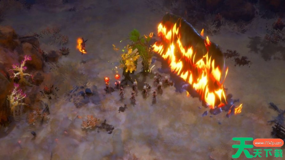 融合火、水、焦油、植物、闪电五大元素,环境与技能联动(如水灭火、焦油助燃),创造动态战术策略。