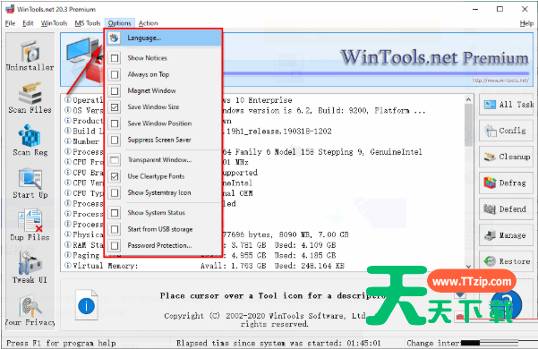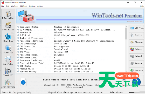 WinTools.net Premium是一款相当优质的可以提升微软Windows操作系统性能的优化的工具,可以将磁盘驱动器中移除自己不需要的软件,清楚相关的注册表项,更好的对进程和服务进行管理,可以满足不同情况下的使用的需要。