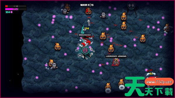 收集灵魂升级角色,并在波次间购买强力强化,增强战斗力,推动角色成长。