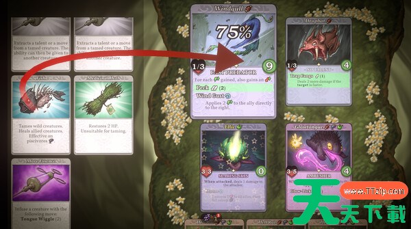 驯服同生态链过多生物会触发领地冲突,需通过食物分配、巢穴建造等模拟经营要素维持卡组内部平衡。