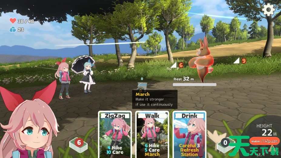 山府第二站是一款非常可爱的Roguelike卡牌游戏,在这里您将使用卡牌来登山和远足,选择您的卡牌,带好您的装备,跟随两位少女一起爬山。在爬山过程中,当山上的天气变化时,山的陡峭程度也随之变化,您得制作登山和远足装备来改善您的游戏体验。